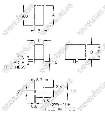 Каталог > Фурнитура для электронных устройств > Держатели и изоляторы компонентов > Держатели и изоляторы конденсаторов > Прочее > CWW-19PJ