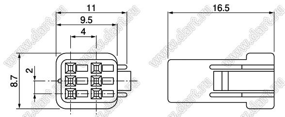 Корпус розетки на провод; шаг 2,00мм; 6-конт.; полибутиентерефталат, цвет натуральный