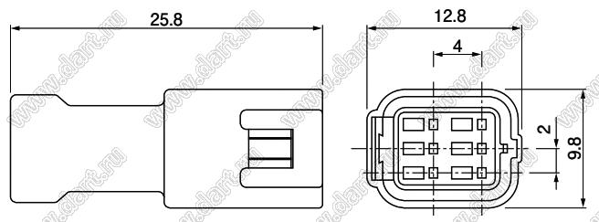Корпус вилки на провод; шаг 2,00мм; 6-конт.; полибутиентерефталат, цвет натуральный