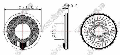 Динамик; D30H5мм; 1,0Вт; 8(Ом)
