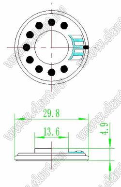 Динамик; D30H4,9мм; 0,5Вт; 8(Ом)