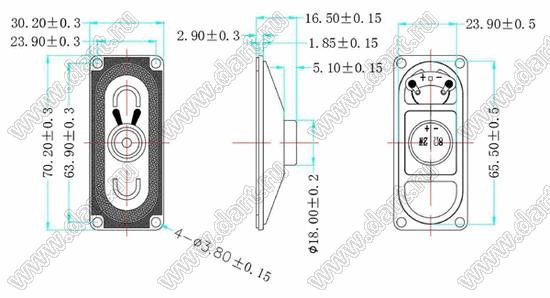 Динамик; 70,2x30,2x16,5мм; 2,0Вт; 8(Ом)