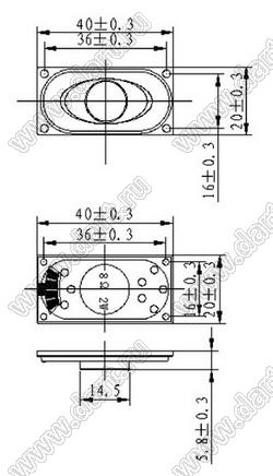 Динамик; 40,0x20,0x5,8мм; 1,0Вт; 8(Ом)
