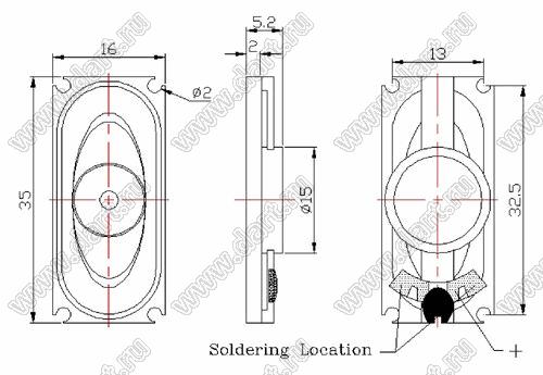 Динамик; 35,0x16,0x5,2мм; 2,0Вт; 4(Ом)