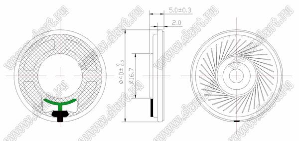Динамик; D40H5мм; 2,0Вт; 8(Ом)