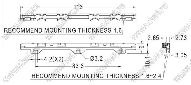 направляющая платы; L=113,0мм; PC + ABS (UL); черный