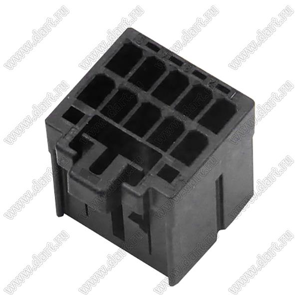 Корпус двухрядной розетки с центральным замком и длинным ключом; шаг 2,50мм; 10-конт.; A=10,0мм; B=13,3мм; C=13,9мм; цвет черный; стеклонаполненный PBT, UL94V-0, черный