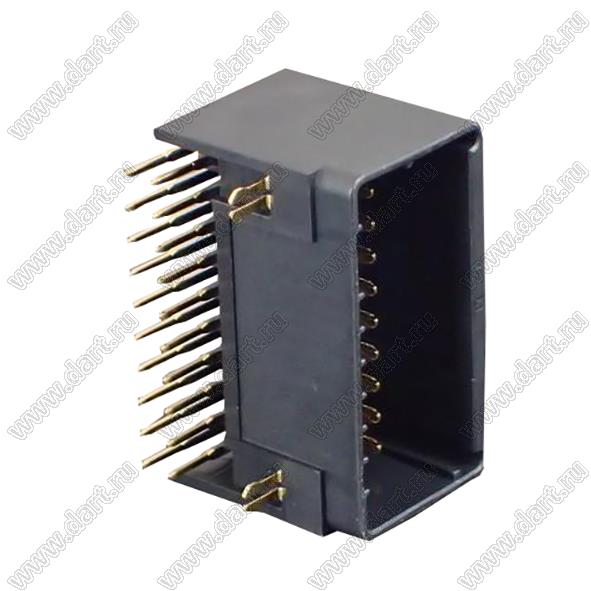 Материал: контакт: никелированный медный сплав, частичное золочение<br> корпус: стеклонаполненный PBT, UL94V-0, черный