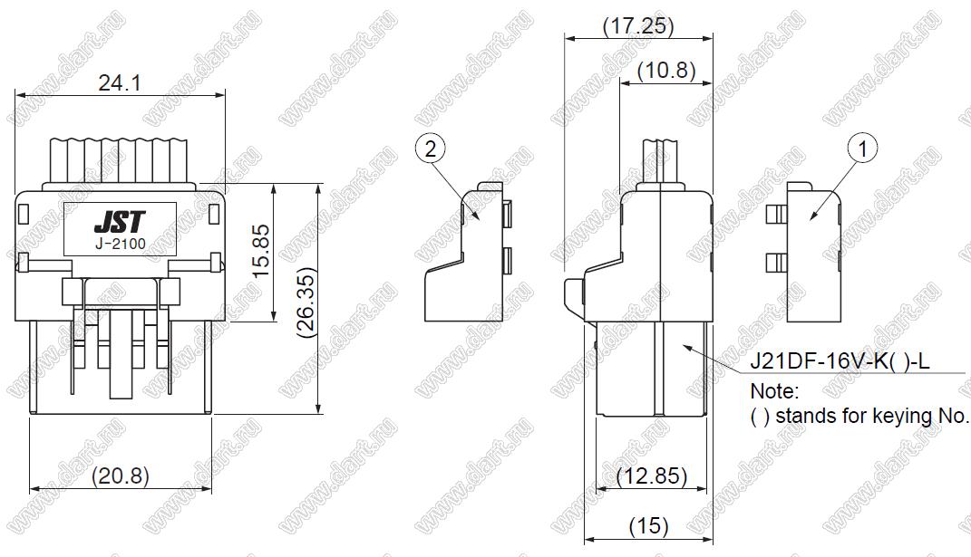 Каталог > Электронные компоненты, радиодетали > Разъёмы (соединители, переходники) > Разъемы кабель-плата > Шаг 2,50мм > JFA-J2000 серия > J21PF-16VKA