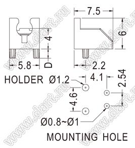 Каталог > Фурнитура для электронных устройств > Держатели и изоляторы компонентов > Держатели светодиодов > Держатели светодиодов угловые на плату > 1 x d=3,0мм > LEJ-4M
