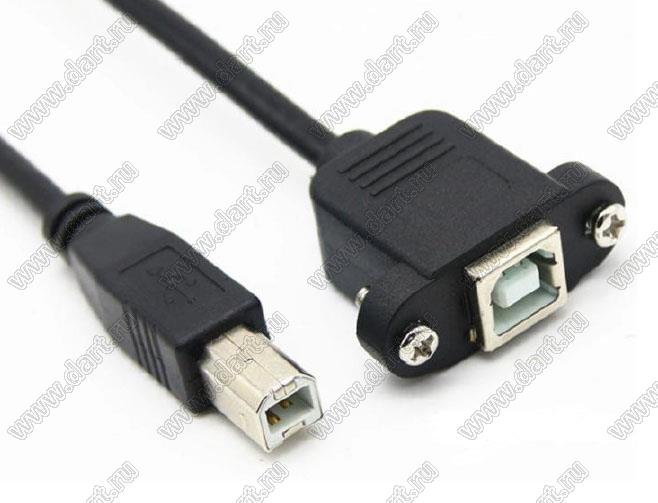 Кабель USB 2.0 B male, the other side USB 2.0 B female with panel mount, with Nut; длина=0,25м
