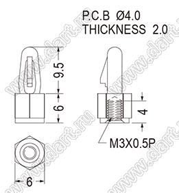Каталог > Фурнитура для электронных устройств > Фиксаторы плат, стойки межплатные > Фиксаторы под круглое отверстие > Фиксаторы с защелкой в плату > BSCB серия > BSCB-6(B)