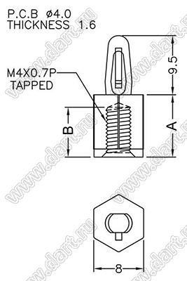 Каталог > Фурнитура для электронных устройств > Фиксаторы плат, стойки межплатные > Фиксаторы под круглое отверстие > Фиксаторы с защелкой в плату > BSCB4 серия > BSCB4-6
