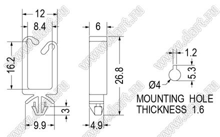 Каталог > Фурнитура для электронных устройств > Крепеж проводов и кабелей > Зажимы проводов с фиксацией в панель на защелках > CHA серия > CHA-15