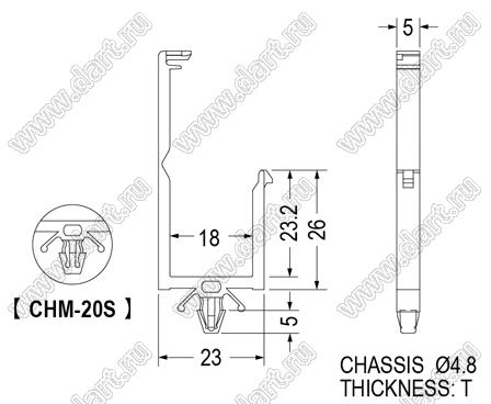 Каталог > Фурнитура для электронных устройств > Крепеж проводов и кабелей > Зажимы проводов с фиксацией в панель на защелках > CHM серия > CHM-20S