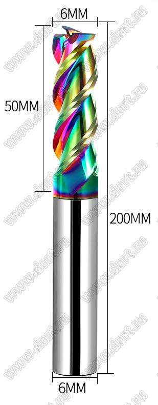 Каталог > Приборы, инструмент, оборудование, материалы > Инструменты > Фрезы > Твердосплавные концевые фрезы, 3 канавки > 55-6x50x6x200L