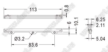 направляющая платы; L=113,0мм; PC+ABS (UL); черный