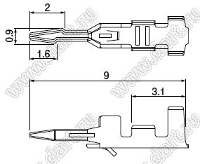 Терминал (контакт) розетки на провод; латунь луженая
