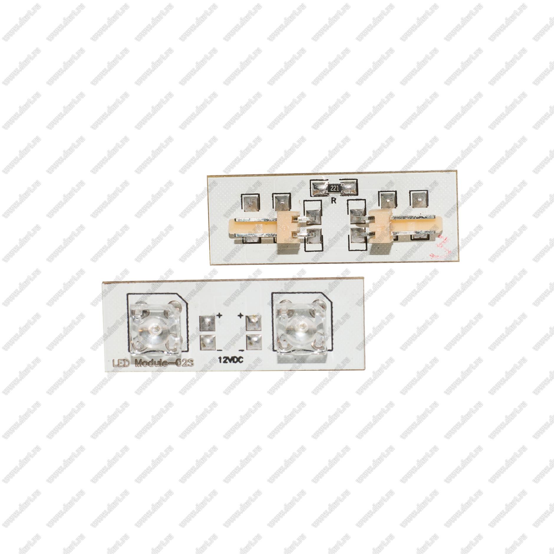 Плата с 2 светодиодами зелеными и монтажной площадкой - 12В