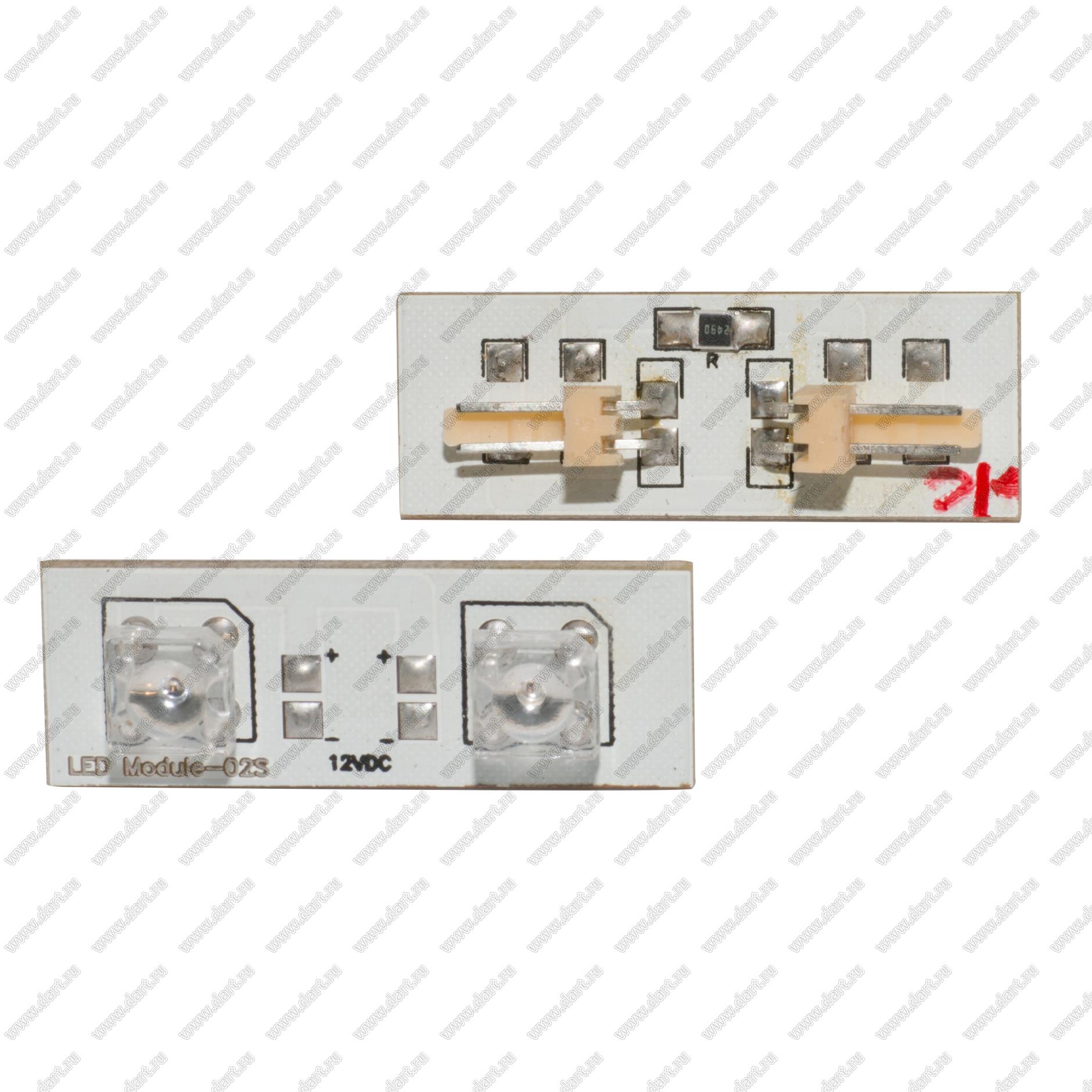 Плата с 2 светодиодами желтыми и монтажной площадкой - 12В