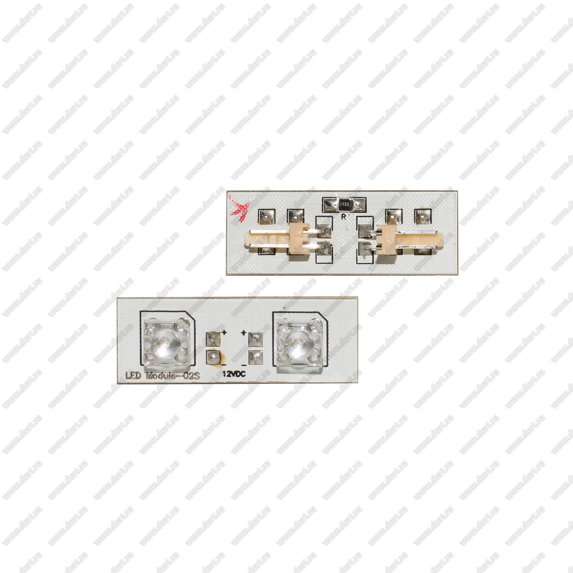 Плата с 2 светодиодами красными и монтажной площадкой - 12В