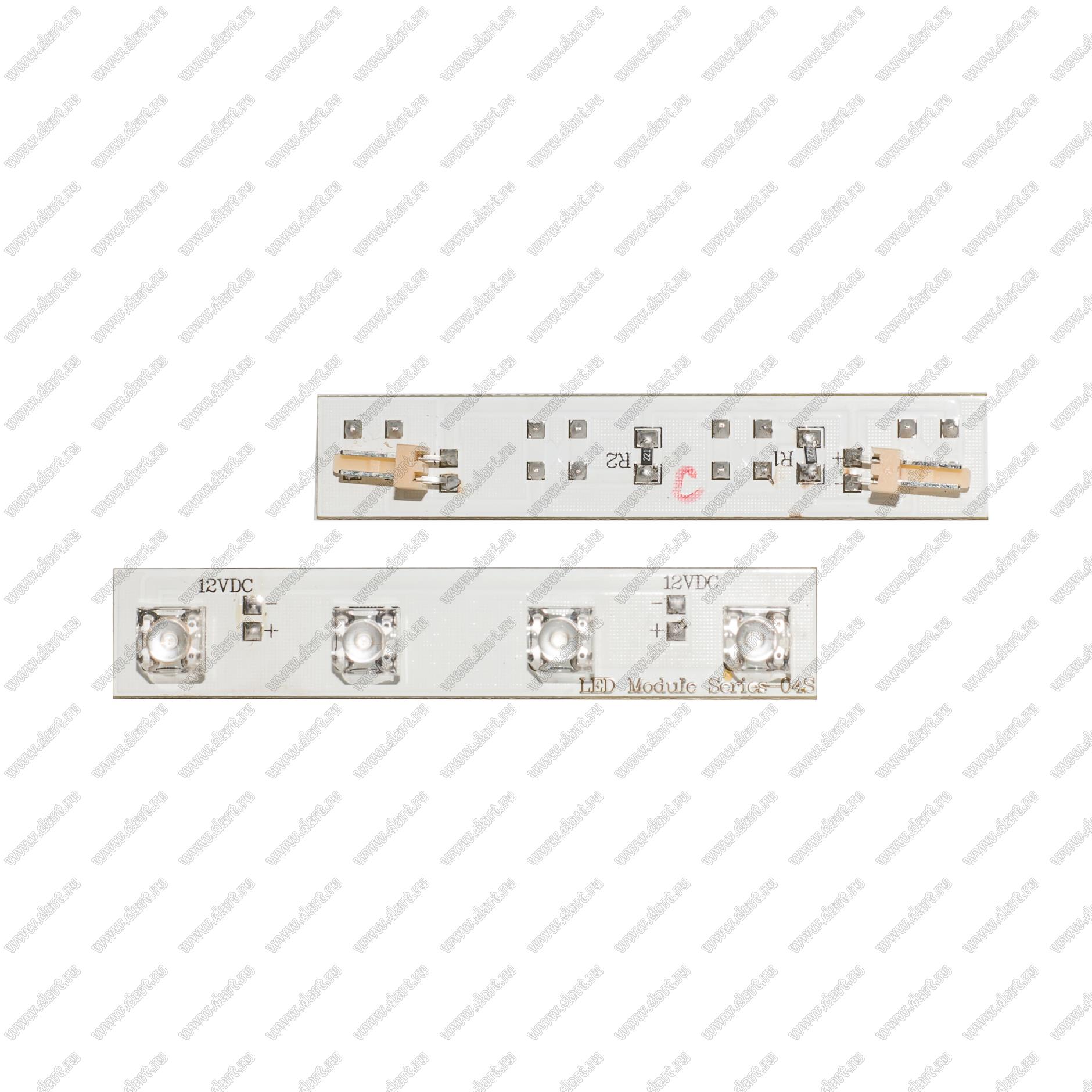 Плата с 4 светодиодами синими и монтажной площадкой - 12В