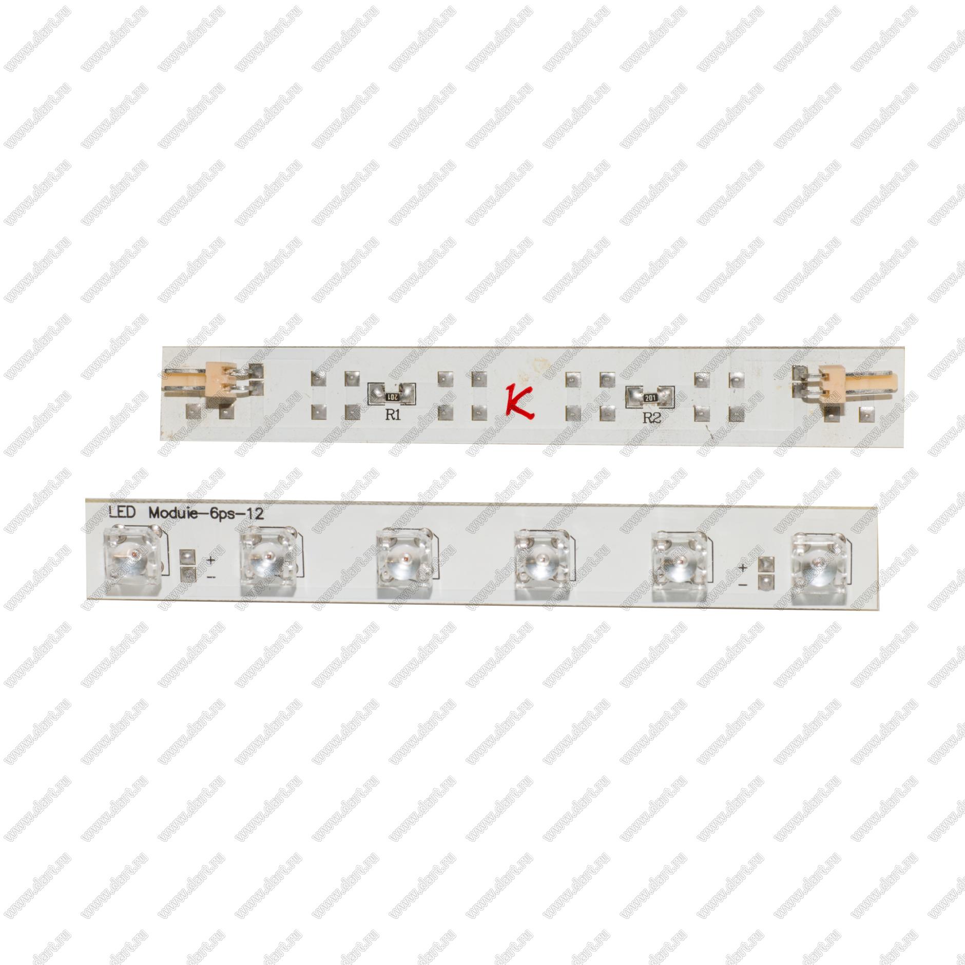 Плата с 6 светодиодами красными и монтажной площадкой - 12В