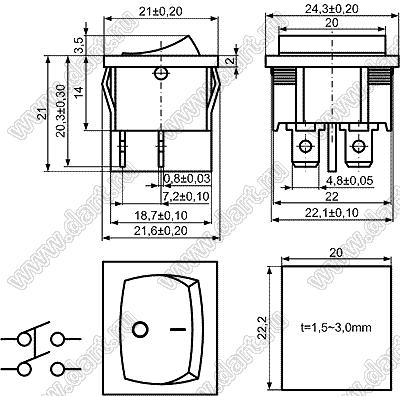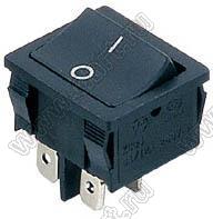 Переключатель клавишный ON-OFF; 21,0х24,3мм; 6A/12A 250VAC; толкатель черный/корпус черный; без подсветки; маркировка "O I"; терминалы 4,8x0,8мм