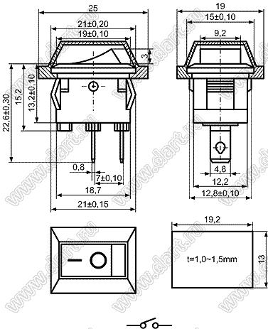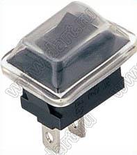 Переключатель клавишный ON-OFF; 21,0х15,0мм; 2/8A 250VAC; толкатель черный/корпус черный; без подсветки; маркировка "O I"; терминалы 4,8x0,8мм
