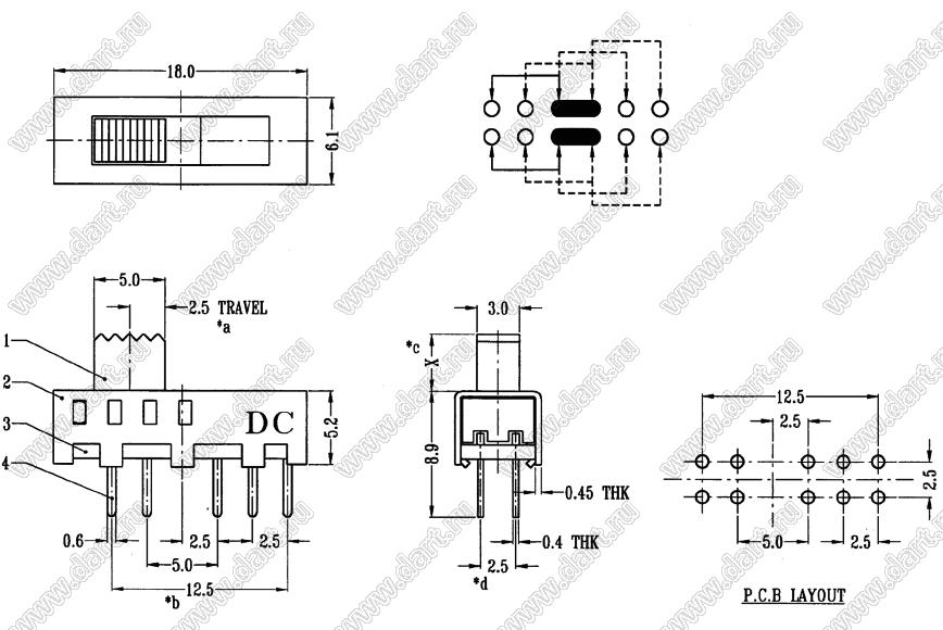 Каталог > Электронные компоненты, радиодетали > Переключатели, кнопки > Переключатели движковые (SLIDE) > Переключатели движковые (SLIDE) прямые > SS-24E01