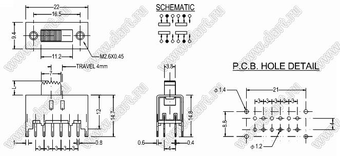 Каталог > Электронные компоненты, радиодетали > Переключатели, кнопки > Переключатели движковые (SLIDE) > Переключатели движковые (SLIDE) прямые > SS-42H11
