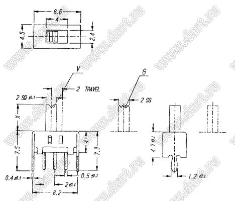 Каталог > Электронные компоненты, радиодетали > Переключатели, кнопки > Переключатели движковые (SLIDE) > Переключатели движковые (SLIDE) прямые > SS-12D02-G6