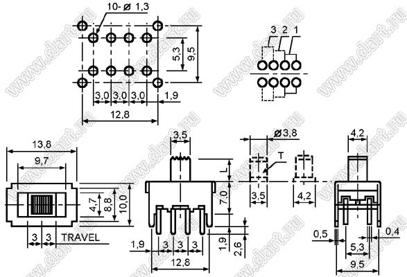 Каталог > Электронные компоненты, радиодетали > Переключатели, кнопки > Переключатели движковые (SLIDE) > Переключатели движковые (SLIDE) прямые > SS-23F06-G5