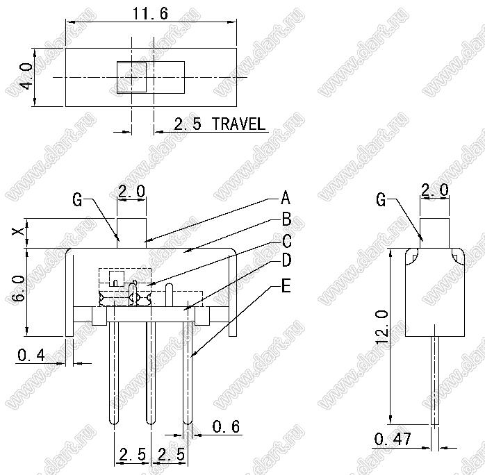 Каталог > Электронные компоненты, радиодетали > Переключатели, кнопки > Переключатели движковые (SLIDE) > Переключатели движковые (SLIDE) прямые > SS-12E01-G5