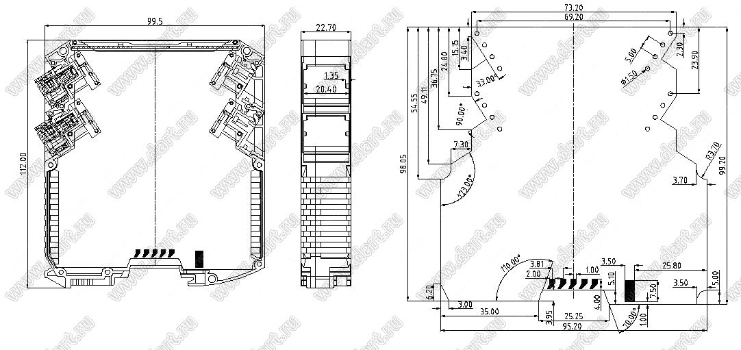 Каталог > Корпусные и установочные изделия > Корпуса для РЭА > Корпуса на DIN-рейку (стандартный электрический рельс) (Case 23-хх) > Case SH801-22.5G