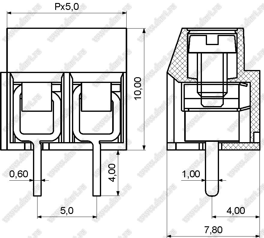 Каталог > Электронные компоненты, радиодетали > Клеммники (колодки клеммные) > Клеммники винтовые для монтажа в отверстия печатных плат > Винтовые клеммники (шаг 5,0 мм) > KF126-5.0 (DG126-5.0) серия > KF126-5.0-02P-14