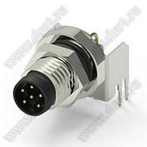 разъем M8 (код A), вилка угловая, гайка спереди; 6-конт.; 30В; 1,5А; IP 67