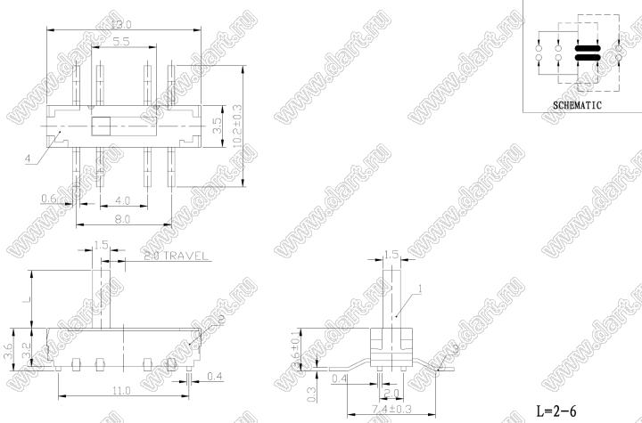 Каталог > Электронные компоненты, радиодетали > Переключатели, кнопки > Переключатели движковые (SLIDE) > Миниатюрные > MSS-23D20 (IS2336S)