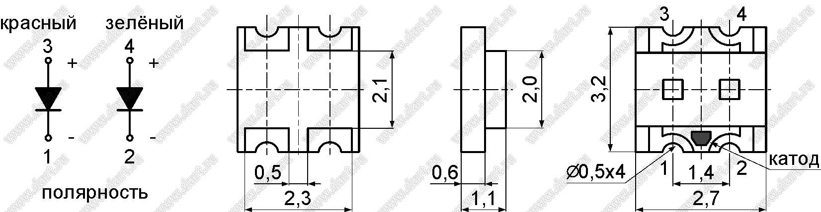 Каталог > Оптоэлектроника и индикация > Светодиоды и изделия на светодиодах > ЧИП светодиоды для поверхностного (SMD) монтажа на плату > ЧИП светодиоды SMD в корпусе LED1210 (3,2x2,7мм) > BT15-2202SURUBGC