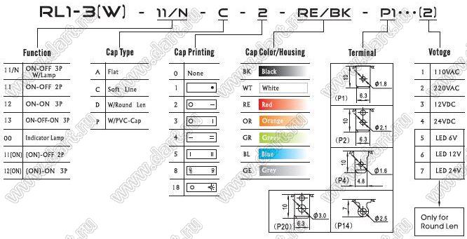 Каталог > Электронные компоненты, радиодетали > Переключатели, кнопки > Переключатели клавишные (ROCKER) > RLx серии > RL1-3(W)11/N-C-2-RE/BK-P2