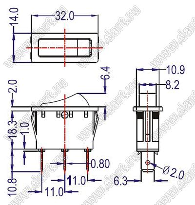 Переключатель клавишный; ON-OFF; 10,1A 250VAC; с подсветкой