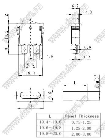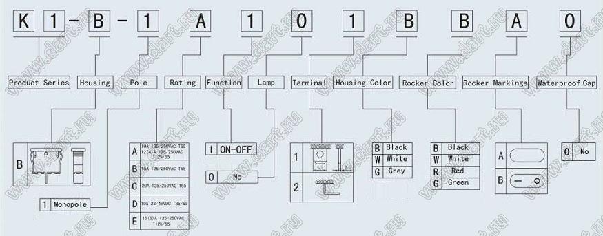 Каталог > Электронные компоненты, радиодетали > Переключатели, кнопки > Переключатели клавишные (ROCKER) > K серия (сильноточные) > K1-B