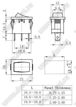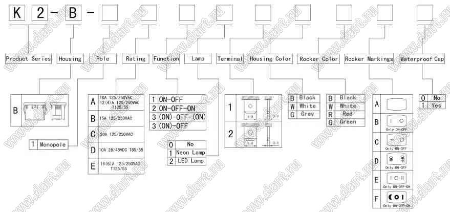 Каталог > Электронные компоненты, радиодетали > Переключатели, кнопки > Переключатели клавишные (ROCKER) > K серия (сильноточные) > K2-B