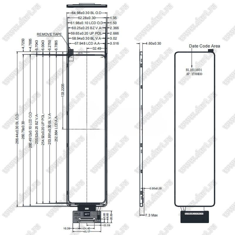Габаритные размеры габариты: 64,98x266,44x4,60 мм