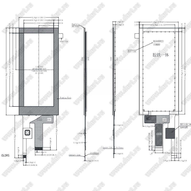 Дисплей IPS 4,0-дюймовый IPS TFT 400x960 ST7701S MIPI-интерфейс, с емкостной сенсорной панелью, TFT; 4,0дюйм; Количество цветов 65K/262K/16,7M; габариты 52,50x112,08x3,55мм