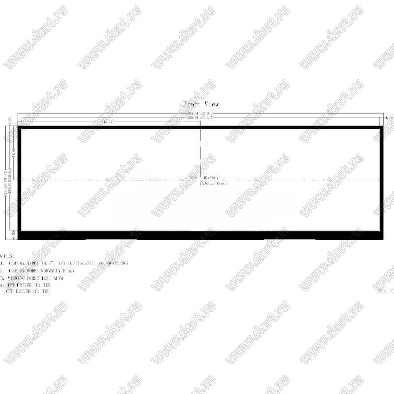 Дисплей IPS 14,5-дюймовый IPS TFT LCD с интерфейсом HDMI 2560x720 пикселей; 14,5дюйм; Количество цветов 16,7M; габариты 363,50x113,50x22,38мм