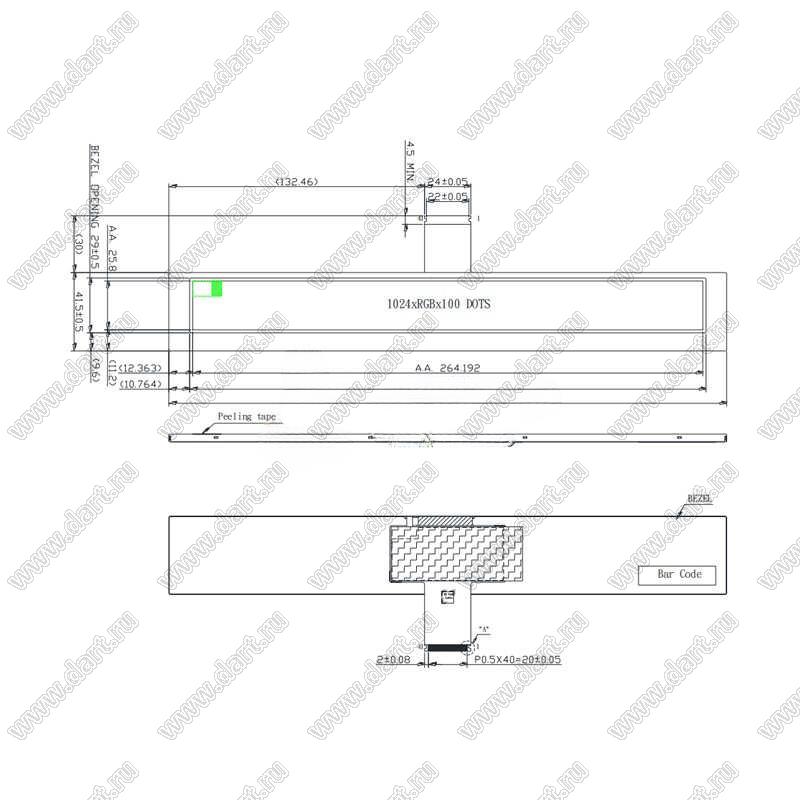 Активная область (полезная площадь): 264,19x25,80 мм