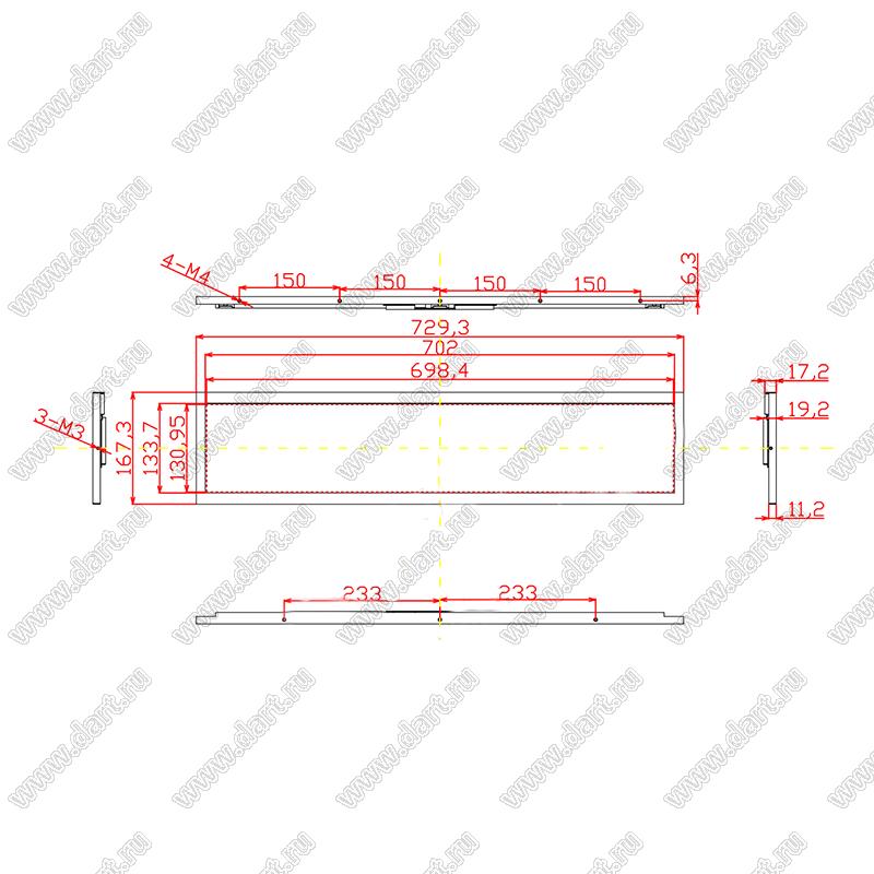Габаритные размеры габариты: 729,30x167,30x19,20 мм