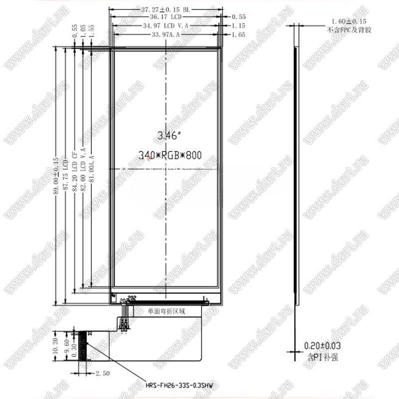 Дисплей IPS 3,5-дюймовый ЖК-модуль с драйвером IC ST7701S с полным углом обзора 340x800 промышленный TFT Bartype; 3,5дюйм; Количество цветов 65K/262K; габариты 37,27x89,00x1,60мм