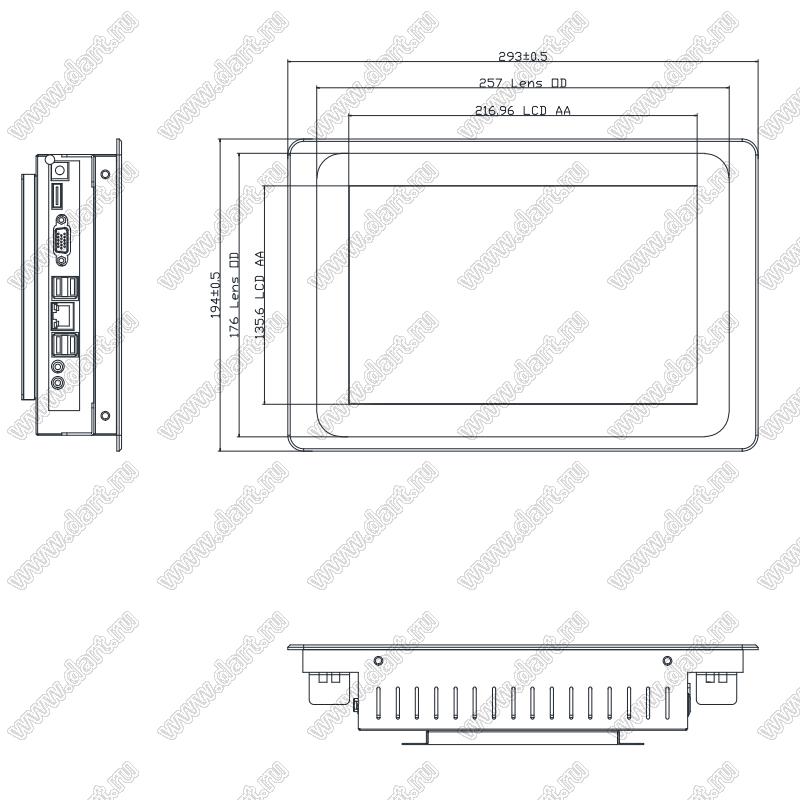 Монитор TFT Монитор с интерфейсом HDMI/VGA с диагональю экрана 10,1 дюйма 1280x800 с полным углом обзора и сенсорной панелью; 10,1 inchдюйм; Количество цветов 16,7M; габариты 293,00x194,00x62,00мм
